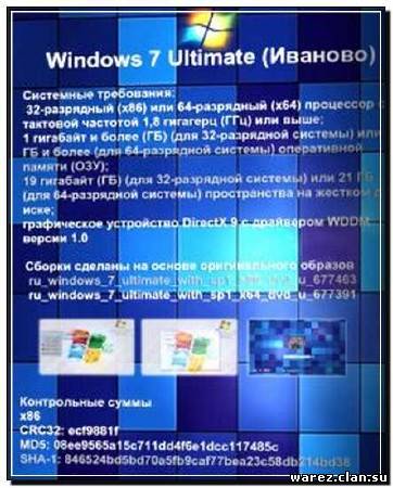 Сборка сделана на основе оригинального образа ru windows 7 ultimate with sp1 x86 dvd u 677463. Интегрирован IE9. Установлены важные обновления по 10.10.12. Применены твики ПКМ, ОЕМ, патч для сторонних тем. Ничего не отключено. Добавлено обои, темы, самые важные программы... |